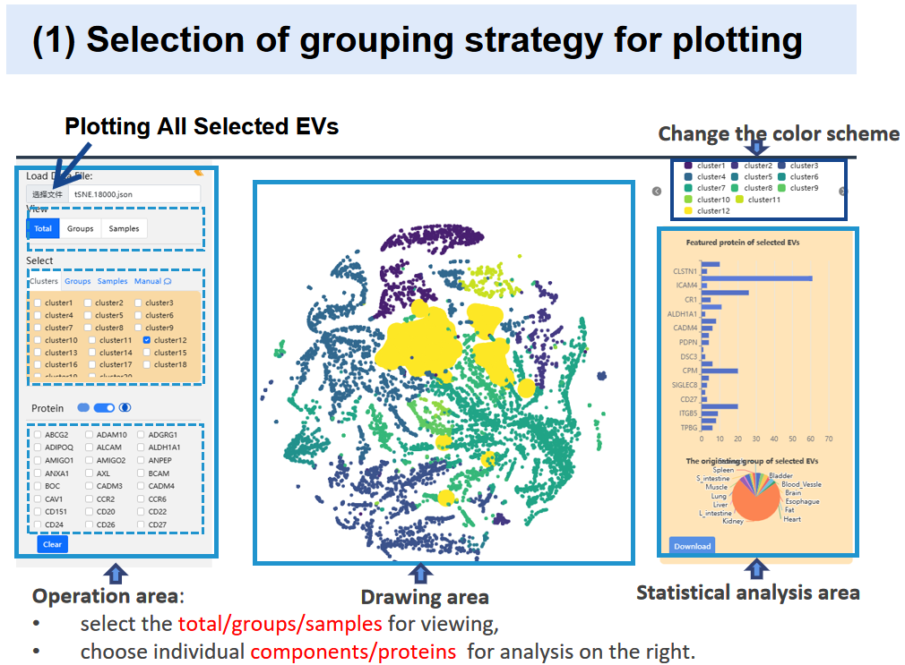 Multiple approaches enables more effective utilization of single vesicle data. Users can download raw data from the download page for import into the analysis pipeline, or upload their own data for fully automated analysis. Its integrated analytical environment and advanced visualization capabilities allow users to efficiently and conveniently obtain analytical results without the need for external software.